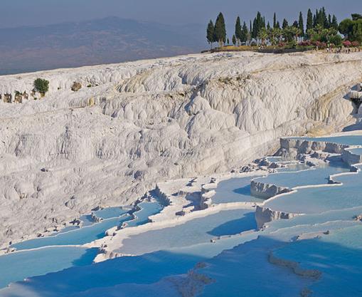 西南的帕木克卡萊市有17個溫泉,以及碳酸鹽巖礦物梯田,這些梯田是由流經(jīng)這些梯田的熱水形成的。水泉的溫度從地面范圍從35°C到100°C。