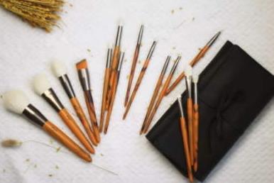 套刷里共有15支刷子,原色山羊毛+櫸木木柄的材料搭配很實在,蓬松的山羊毛抓粉力強,不容易掉毛。個人覺得這套里的眼部刷更加出色,有眼尾刷、扁頭刷、細節刷等多種刷型,能滿足復雜眼妝的打造