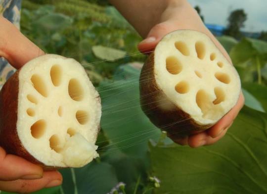 蓮藕的外皮光滑,呈黃褐色,內面呈白色。蓮藕營養價值很高。它含有豐富的鐵、鈣等微量元素。它還含有豐富的植物蛋白、維生素和淀粉,能明顯補益氣血,增強人體免疫力。蓮藕含有粘液蛋白和膳食纖維,可與人體內的膽汁酸鹽、食物中的膽固醇和甘油三酯結合,使其從糞便中排出,從而減少脂質的吸收。