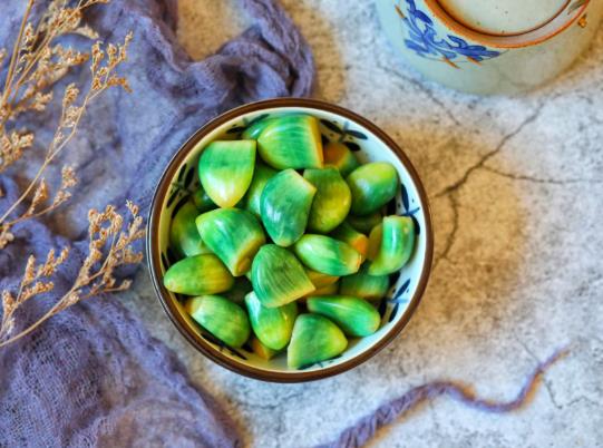 臘八蒜是用醋腌制的。它嘗起來又酸又辣。因多為臘八日腌制,故稱臘八蒜。一般臘八蒜在適宜環(huán)境10~15天后即可食用。腌制的臘八蒜看起來是綠色的。其實(shí)10~15天是吃不完的。可以根據(jù)臘八蒜的外觀變化,一般臘八蒜變綠的時(shí)候就可以食用了。