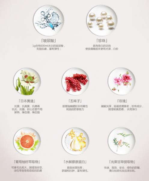 大馬士革玫瑰、珍珠、透明質(zhì)酸、五味子、光果甘草提取物、水解膠原蛋白、葡萄柚籽萃取物等等,每一個(gè)成分都是美容界公認(rèn)的極品原料,這些原料成分綜合在一起,再結(jié)合PHM的專(zhuān)利技術(shù),SUPER AQUA超級(jí)水光珍珠面膜的效果已經(jīng)不需再解釋。