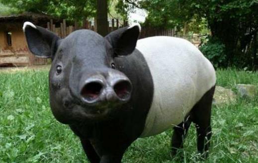 馬來貘(Tapirus indicus)是生活在東南亞地區的大型哺乳動物。它們的體長超過2.5米,是夜行性的素食主義者。這種動物的視力很不好,在森林和沼澤中求生主要依靠敏銳的嗅覺和聽覺。馬來貘的“長鼻子”看起來像“低配版”的象鼻,也是由鼻部和上嘴唇共同組成。馬來貘和大象的親緣關系并不近,相似的鼻子只是趨同進化的結果。