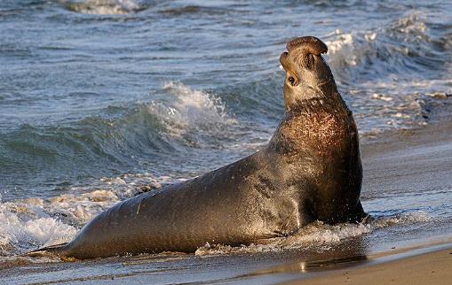 北方象海豹(Mirounga angustirostris)是棲息在東北太平洋海域的巨獸。它們主要在加拿大、美國和墨西哥西海岸的偏僻島嶼上繁殖和育幼。這種海豹表現出顯著的“性二型”,也就是雄性和雌性的外貌差別很大。成年雄性象海豹的體長可達5米,體重近3噸,臉上還長著30厘米的臃腫大鼻子。雌性的體型則較小,體長不足3米,體重不足1噸,而且鼻子很小,貌不驚人。從這個角度上看,長鼻子是雄性象海豹的第二性征。只不過,這個大鼻子也不是與生俱來的。大概3歲左右雄性的鼻子才會開始發育長大。