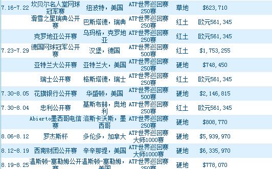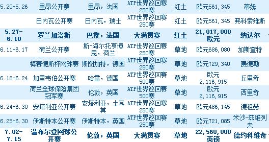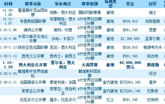 2018年ATP比賽賽程表 2018年ATP有哪些重要賽事安排