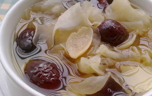 銀耳中的天然膠質有潤膚嫩膚的作用,還能有效的去除黃褐斑、雀斑,而紅棗有補血、活血的作用,因此,經常食用銀耳紅棗湯能改善面部的氣色,具有一定的美容功效。