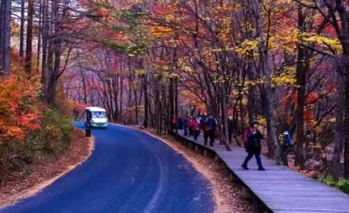 現在的關門山正是賞楓葉的最佳時間,楓葉多得讓你數不過來,美得讓你感覺像是走進了仙境。楓葉一片綴連著一片,一株綴連著一株,像火焰,像扇子,形態萬千,千姿百態。