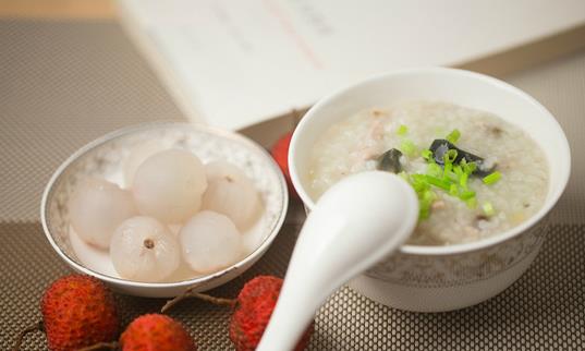 做法:荔枝干15枚(去殼取肉),蓮子、淮山各150克,瘦肉250克,將它們同粥一起煮,每周吃兩次。