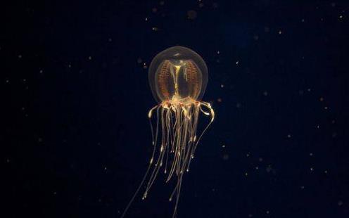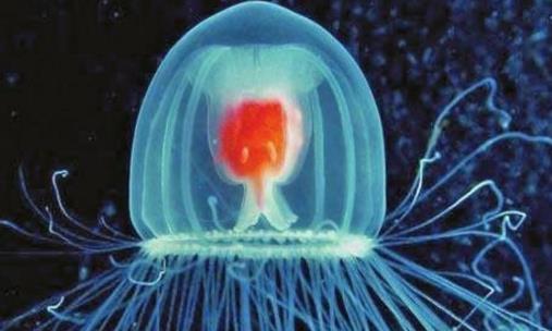 燈塔水母,一種小型的水母,身體如同一個古鐘,直徑在4至5毫米,身體是透明的顏色,可以直接的看見它身體里紅色的消化系統,形狀猶如燈塔,所以因此得名。燈塔水母的胃相比較于自己的體積而言是十分的巨大的,且呈現出鮮艷的紅色。
