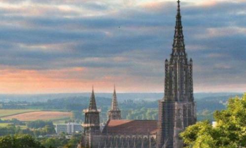 教堂位于德國巴登-符騰堡州(Baden-Wuerttemberg)烏爾姆市(Ulm)。烏爾姆(Ulm)位于德國南部,一座11萬人口的現(xiàn)代化城市。整個(gè)城市布局圍繞著市中心的敏斯特教堂(Ulm Minster)展開。這座教堂是典型的哥特式建筑,高度為世界第一。這座磚石結(jié)構(gòu)的教堂從設(shè)計(jì)到建成經(jīng)歷了近600年人世滄桑.凝結(jié)了數(shù)代工匠的智慧和血汗。