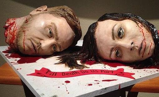 這個頭顱蛋糕是娜塔莉結婚時候的婚禮蛋糕,當初端出一個蛋糕的時候,將出席婚禮的賓客嚇了一跳。這么逼真又恐怖的蛋糕,膽小的人真是看著就害怕,也不知道有沒有人敢吃。蛋糕師娜塔莉做出過一系列的恐怖蛋糕,都非常的重口味。