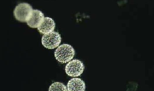 在顯微鏡下硫磺珍珠以煉狀叢聚,自然狀態下存活于硫化氫濃度高的海底沈積物中,硫化氫對動物極毒,但卻是硫磺珍珠的食物,它在細胞壁內存著硝酸鹽,以之來氧化硫化氫。在極端環境中,存在一些奇特的微生物,例如攝氏百度高溫下的熱泉就有古菌,南極洲零度以下的海底,及冰層內都有菌存在,不但研究生命起源的人極為興奮,也讓生物科技專家雀躍不已。一般細菌直徑都在1微米以上,而芬蘭科學家發現了一種能引起尿結石的納米細菌,其細胞最小直徑為50納米,甚至比最大的病毒更小。這種細菌分裂緩慢,三天才分裂一次。是目前所知最小的具有細胞壁的細菌。