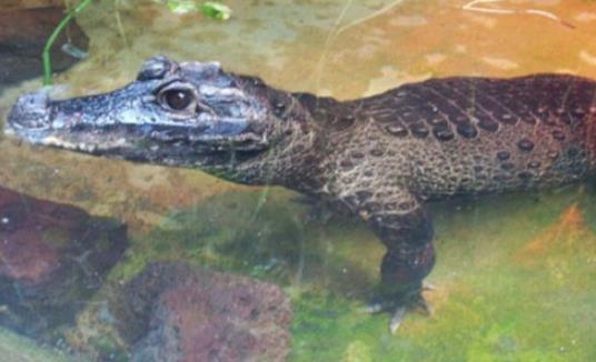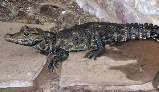 非洲侏儒鱷是世界上體型最小的鱷魚品種,包括尾部在內(nèi)體長也只有1.5米左右,最大個體長1.9米。它們的頸部、背部、腹側(cè)和尾部均生有鱗片,成體的體色完全呈黑色,幼體還間雜著黃棕色。