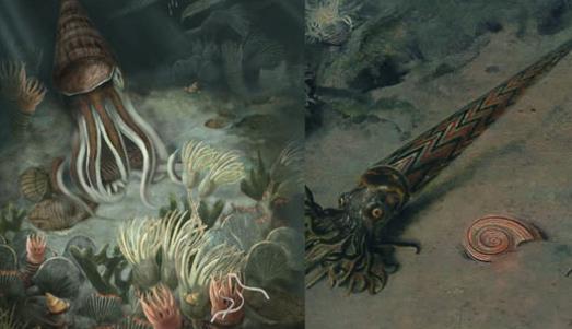 鸚鵡螺早在距今5億多年前的奧陶紀就出現了,它們雖然在地球上經歷了數億年的演變,但是外形和習性等沒有發生太大的變化。在奧陶紀時期,鸚鵡螺的體型比現在要龐大許多,身長可達11米,憑借巨大的身軀、靈敏的嗅覺和強大的觸手,它們可以捕食三葉蟲和海蝎子等動物,幾乎是那個時代海洋無脊椎動物中的頂級掠食者。