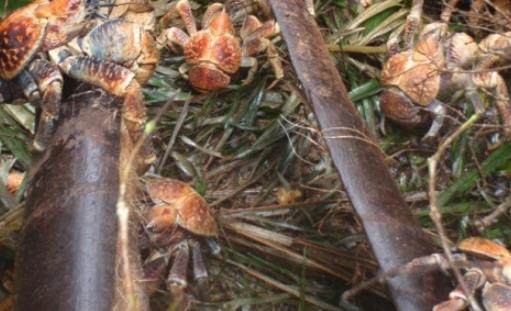 椰子蟹廣泛分布于熱帶太平洋和印度洋許多珊瑚島上,生活在海邊附近的熱帶樹林中。它們怕強光,所以白天都待在洞穴里休息,夜間才外出覓食。它們是一種雜食性動物,不僅吃植物的果實和葉子,也吃腐壞的動物尸體,甚至連比自己小的同類也在它們的食譜上。椰子蟹非常善于爬樹,可以爬到距離地面十幾米的椰子樹樹頂。憑借著一雙有力的螯足,它們可以輕易剪下椰子,鑿開椰殼享受果肉。