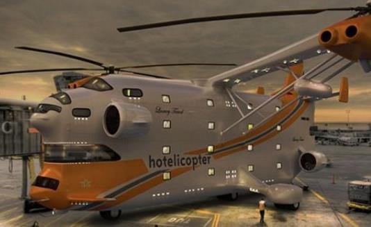 2008年的愚人節,一座會飛的五星級酒店由美國Hotelicopter打造推出,據了解這是使用了前蘇聯生產的一款Mil-V12直升機進行改造而來,在機身內部建成18間五星級客房。這是V12直升機第一次向社會大眾揭開自己神秘的面紗,由此世界上最大的直升機Mil V-12,再次出現在了蔚藍的天空中。