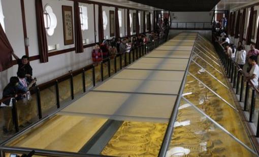 從已揭露部分的殉馬密度看,西面南部30米長的地段共隨葬八十三匹馬,平均1米地段可葬2.8匹;北面M米長的地段共有一百四十五。整個馬坑排列的密度基本一致。如果按馬坑全長215米計算,那么,這座殉馬坑的全部殉馬可達六百匹以上這是一個令人震驚的數字,真是目前所能見到的古代最大的一個殉馬坑了。現已建立一座陳列館。