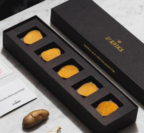而且花這么大的價錢買這么一盒薯片,根本就不劃算嘛,只能說這薯片只有土豪才能吃得起。這款可以說是世界上最貴的薯片,別看它這么貴,據說這款名為St. Eriks的薯片銷量還是蠻高的,而且你有錢也難買到它,現在已經售賣完了。
