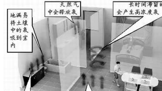 6.對多數人而言,接觸的大部分氡來自家中。家中氡的濃度取決于:地基的巖石和泥土中鈾的含量;可供氡進入家中的途徑;室內外空氣的交換速度,這取決于房屋的構造、居住者的通風習慣和窗戶的密封程度。