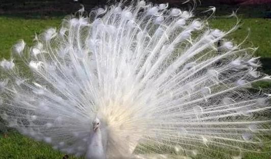 和藍孔雀和綠孔雀不同,白孔雀出了眼睛呈淡紅色的以外,它全身潔白無一絲雜色。白孔雀開屏的時候非常的美,比一般的藍孔雀綠孔雀都要美得多,可以說是世界上最美的孔雀。那潔白的漂亮羽尾,給人一種夢幻般的感覺,光是看圖片就覺得超級美。