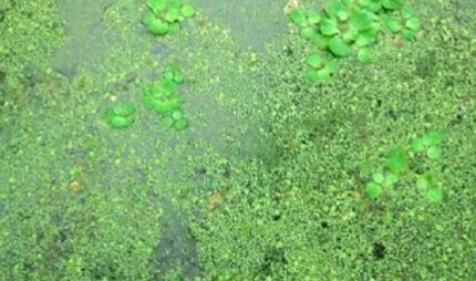 三、蕪萍的移植施基肥后10天可移植蕪萍,每667平方米投放100公斤左右,蕪萍的生長與水溫的關(guān)系密切,水溫23~32℃時(shí)生長最快,低于15℃或高于35℃時(shí)生長較慢。在低溫時(shí)可覆蓋薄膜增溫;夏天,每天在蕪萍層上潑水2次降溫或灌入地下水降溫,同時(shí)也可搭蔭棚或遮陽網(wǎng)。