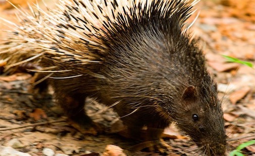 豪豬又叫箭豬,意即滿身針刺的豬。其實它根本不象“豬”,因為它從背部到尾部,均披著豬所沒有的、像簇箭一樣的棘刺。特別是臀部棘刺長得更長、更多,其中粗者宛若筷子,長者近達半米。每根棘刺的顏色是黑白相間,鮮明奪目。豪豬除有棘刺外,它還有一個肥壯的體軀,銳利的牙齒,鼠一般的嘴臉,因此屬于嚙齒目動物。
