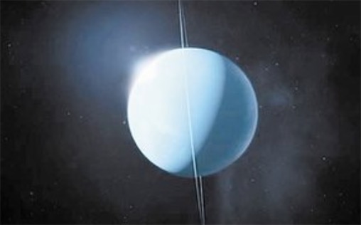 天王星(Uranus),為太陽系八大行星之一,是太陽系由內向外的第七顆行星(18.37~20.08天文單位),其體積在太陽系中排名第三(比海王星大),質量排名第四(小于海王星),幾乎橫躺著圍繞太陽公轉。