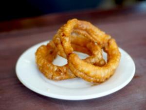 焦圈是一種北京特有的炸制食品,碗口大小,形似西方的炸面包圈,但口感更酥脆?少A存十天半月,質(zhì)不變,酥脆不皮。焦圈常作為另一種北京特有小吃豆汁兒的配菜食用。 焦圈的做法-焦圈的營養(yǎng)價(jià)值 焦..