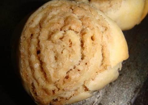 3、包酥:將和好的面周圍搟薄,把和好的酥放在上面,由四邊折起將酥包嚴搟開,先折三,再搟開折四之后,再反復一次便可(三四是指折起面的層數)。做冰花加輔料砂糖250克。