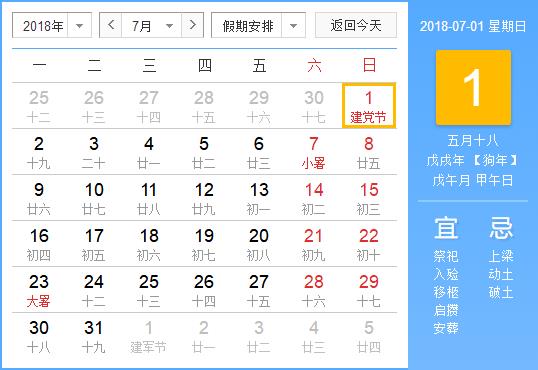 7月份有什么節日?7月份節日時間..