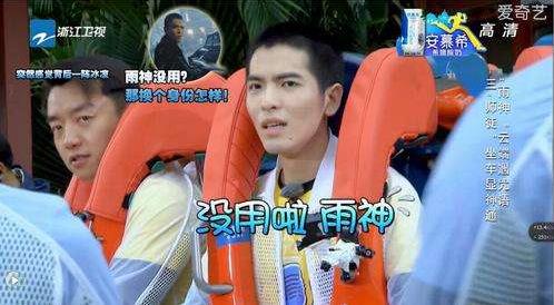 在挑戰U形板游樂設施的時候,蕭敬騰因為害怕,請求工作人員幫忙把安全設施系緊一點。工作人員系好后蕭敬騰撒嬌,讓再緊一點,工作人員是個小妹妹,無奈的告訴蕭敬騰:“雨神,沒用的!”蕭敬騰的大名,已經被“雨神”取代。