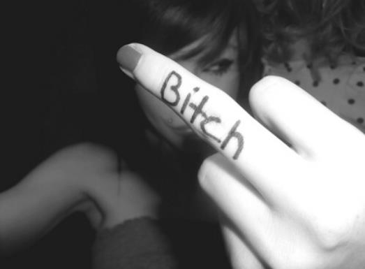 如果某事很bitching(像婊子一樣),那么它一定相當酷或別具一格,但是如果某人在bitching(發牢騷),那么他一定是在抱怨或哀訴。成為someone’s bitch(某人的婊子),即成為他或她的仆人或奴隸。坐在bitch seat(婊子座位)上,意為坐在汽車中間小于一般尺寸的座位上。bitch slap(婊子掌擊),就是張開手掌打擊。bitch的原意是“母狗”,但是現在它能被用于表示任何從有趣的幽默到尖刻的冒犯等各種事物。