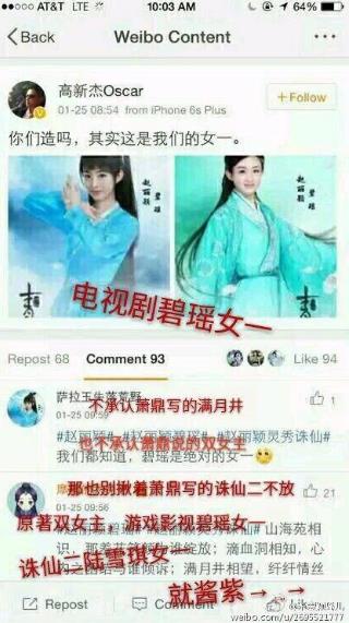 這劇官宣陸雪琪時期就開始撕,到官宣碧瑤還是撕。一開始書粉說陸雪琪是女主,后來電視劇官方說碧瑤是女一,再到作者說雙女主,粉絲撕的天昏地暗。