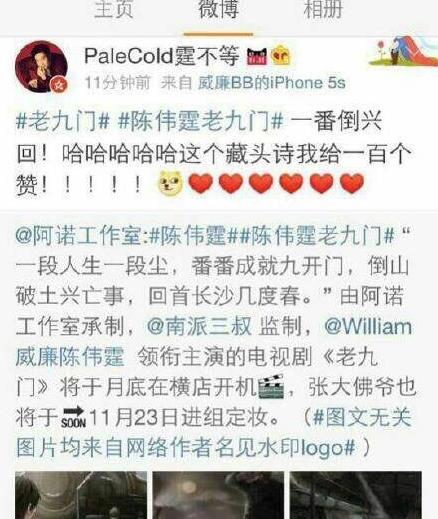 此劇官微,海報以及官微 先后,都是陳偉霆1番。