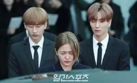 Red Velvet成員金藝林在金鐘鉉葬禮上搶至親位置,擠不出眼淚對鏡頭假哭。