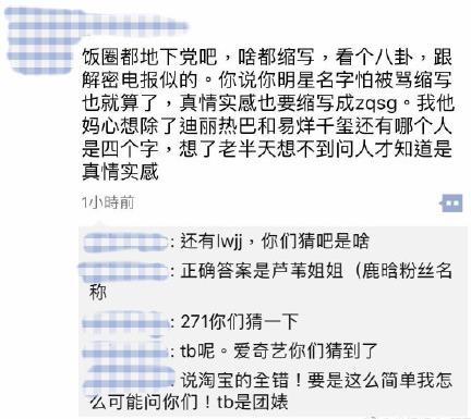 最近關(guān)于這個(gè)飯圈縮寫梗引起了大家的廣泛吐槽,一般大家在討論明星八卦的時(shí)候通常為了避免撕逼會(huì)采用該明星的名字縮寫,但是如今真的像“xswl”這類詞匯的縮寫不知道意義在哪的飯圈黑話詞匯還有很多。在這里大致為大家做一個(gè)飯圈專用縮寫匯總:比如像zqsg(真情實(shí)感)、271(愛奇藝)、dbq(對(duì)不起)、bhys(不好意思)、sjb(神經(jīng)病)、djll(頂級(jí)流量)、xxj(小學(xué)雞)...大概飯圈都是地下黨吧,看個(gè)八卦跟解密電報(bào)似的。