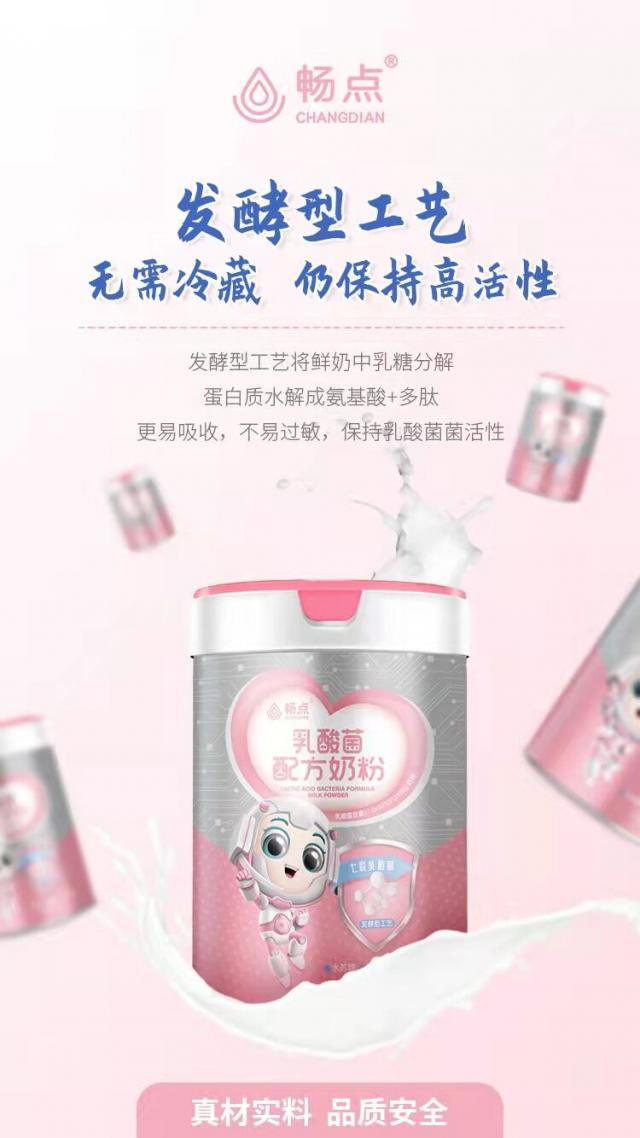 暢點乳酸菌奶粉,采用生牛乳生產、發酵型工藝制作,新鮮、營養、不上火。暢點乳酸菌奶粉將鮮奶中的乳糖分解,連同蛋白質被水解成氨基酸和多肽,更容易被人體消化吸收,不易過敏,徹底解決寶寶乳糖不耐受問題,減少了寶寶拉肚子的幾率;暢點乳酸菌奶粉還添加了丹麥科漢森七聯乳酸菌以及水蘇糖、乳鐵蛋白、葉黃素酯、牛磺酸、乳糖酶等多種營養素,具有雙向調節腸道的作用,既能緩解便秘上火,又能調節腹瀉及消化不良等腸道不適癥狀,提高腸道的消化和吸收能力,提高機體免疫力;最重要的一點就是每一百克暢點乳酸菌奶粉中活性乳酸菌的含量就超過了10億,都是滿滿的有益活菌,能夠促進人體腸道健康,維持人體腸道菌群平衡。