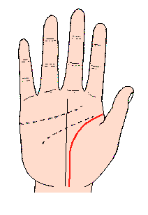 生命線是食指與拇指之間,以半圓形包圍拇指球的線,任何人的手都刻有此線;最好的生命線,是深刻包圍拇指球至底部,忌短及在中部終止或斷續的線,又有流向月丘的線,有的緊包圍拇指球,也有較寬包圍等各種線。
