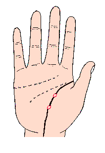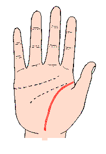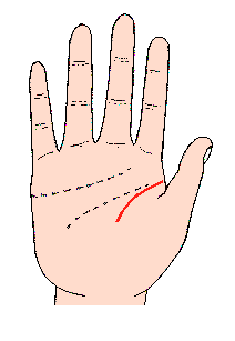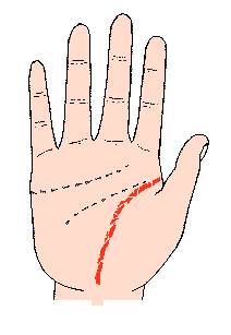 生命線之弧形少,金星丘的面積小;精力不旺盛或性荷爾蒙分泌少,所以吸引異性的魅力較弱;生命線或智慧線幼弱,再加上金星丘貧乏,則表示生活力弱,且有虐待狂,因此要開拓命運很難。