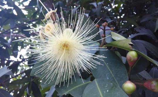 成熟果實(shí)水分較少,有特殊的玫瑰香味,故稱之為“香果”。蒲桃種子的種皮干化,呈中空狀態(tài),只有一肉質(zhì)連絲與果肉相連接,可以在果腔內(nèi)隨意滾動(dòng),并能搖出聲響,因此又稱其為“響鼓”。當(dāng)蒲桃的果實(shí)出現(xiàn)這種“響鼓”的現(xiàn)象,則說(shuō)明其已經(jīng)成熟。