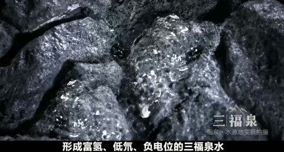 冰雪融水在往下逐層滲透的過程中,和古老巖石表層的礦物質(zhì)發(fā)生輕微反應(yīng),產(chǎn)生氫分子和活性氫,呈現(xiàn)出天然的負電位屬性,但大部分水在地表以上滲出,形成瀑布或山泉,和空氣大量接觸后失去了含氫、負電位的屬性,只有少部分未和空氣充分接觸的水滲透到地表以下幾百米的儲水地帶,形成富氫、低氘、負電位的三福泉水。