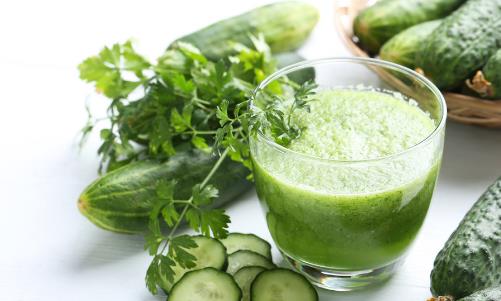 醫學家排列的黃瓜汁醫用價值表上,利尿功效名列前茅。黃瓜汁在強健心臟和血管方面也占有重要位置,能調節血壓,預防心肌過度緊張和動脈粥樣硬化。黃瓜汁還可使神經系統鎮靜和強健,能增強記憶力。黃瓜汁對牙齦損壞及對牙周病的防治也有一定的功效。黃瓜汁所含的許多元素都是頭發和指甲所需要的,能預防頭發脫落和指甲劈裂。黃瓜汁含脂肪和糖較少,是比較理想的減肥飲料
