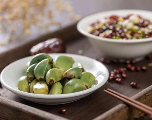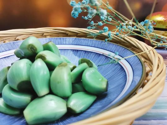 臘八蒜通常是指用醋腌制的蒜,成品顏色翠綠,口味偏酸、微辣。因多在臘月初八進行腌制,故稱“臘八蒜”。泡臘八蒜是一道主要流行于中國北方,尤其是華北地區的傳統小吃,是臘八節節日食俗。在陰歷臘月初八的這天來泡制蒜。其實材料非常簡單,就是醋和大蒜瓣兒。做法也是極其簡單,將剝了皮的蒜瓣兒放到一個可以密封的罐子、瓶子之類的容器里面,然后倒入醋,封上口放到一個冷的地方。慢慢地,泡在醋中的蒜就會變綠,最后會變得通體碧綠的,如同翡翠碧玉。中國北方一到臘月初八,過年的氣氛一天賽過一天,華北大部分地區在臘月初八這天有用醋泡蒜的習俗,叫臘八蒜。但臘八蒜吃多了會產生抗物酶,讓人精神疲憊。