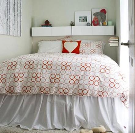 高高的床鋪仿佛不斷在散發(fā)出:躺下來吧,來躺一躺的執(zhí)念!特別又是這類小臥室里,大大的床鋪有著絕對的吸引力。白色的運用讓小空間在視覺上得以膨脹,不會覺得壓抑憋悶。